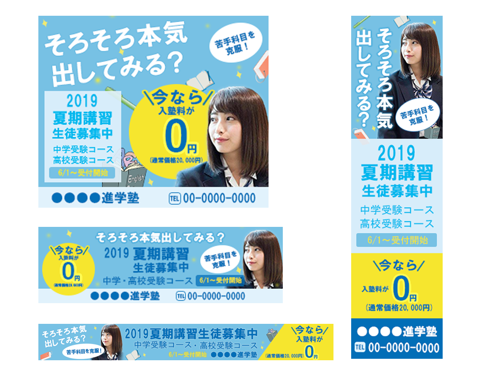 - 【習作】架空の学習塾の夏期講習生徒募集バナー制作
